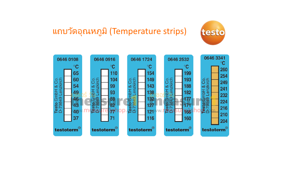 แถบวัดอุณหภูมิ (Temperature strips) -Testoterm แผ่นสติ๊กเกอร์วัดอุณหภูมิ สำหรับงานซ่อมบำรุง, ขนส่งสินค้า
